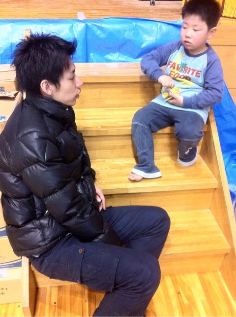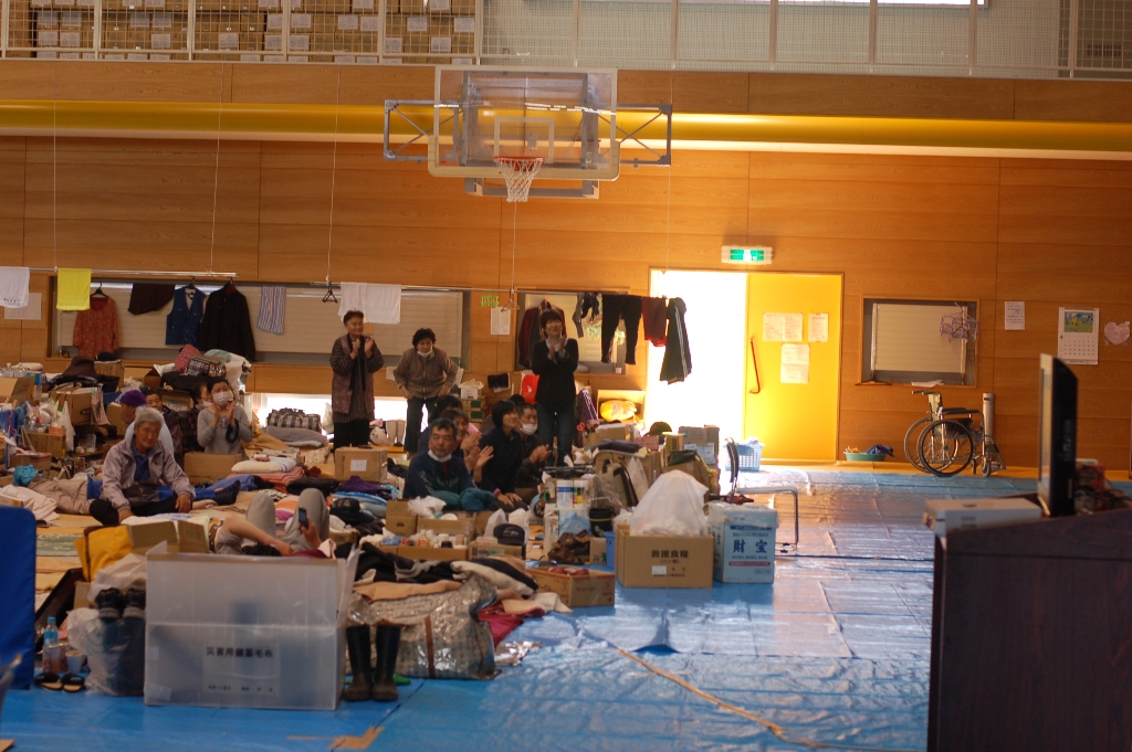 津波の被害にあわれた被災者の150名が原発の体育館で避難生活をされています。