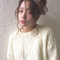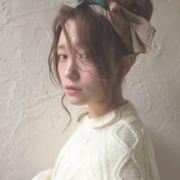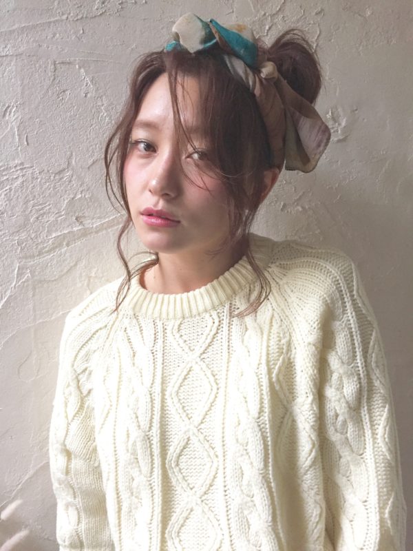高めお団子アレンジにスカーフを巻いただけの簡単アレンジ。なんで可愛いかは顔まわりの似合わせです!!※前髪と顔まわりのカットが一番大事※一人一人に合わせて顔まわりまでこだわってデザインさせていただいてます。